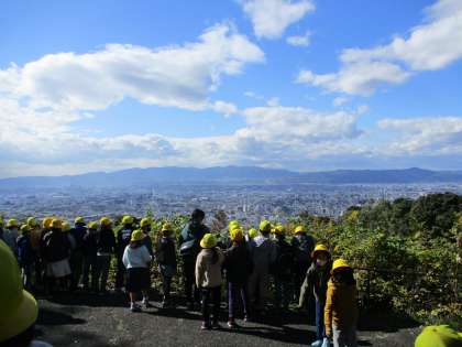 将軍塚からの景色を見て,子ども達は大興奮!「すごくきれい!」「京都市は山に囲まれていることが分かる!」など,広大な景色に感動していました。
