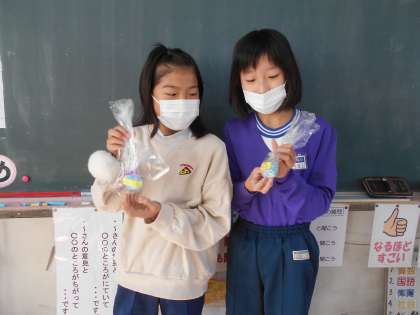 4年生の子どもたちは,クラブ活動に大変意欲的です。運動系や文科系と川岡小学校では数々の魅力的なクラブがありますが,その内の1つのクラブで自分たちで作った作品です。なんとそれは,入浴剤。仕上がりが大変良くて驚きました。いつも入るお風呂に比べて,気持ち良いかもしれませんね,きっと!