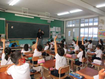 今日は栄養教諭の先生と,「大豆のみりょく」を探る学習をしました。3年生は国語科の「すがたをかえる大豆」という学習で,大豆については少し知っていました。大豆は「味噌」や「醤油」「きなこ」など,様々な姿に変身して,私たちの食卓に出てきています。大豆は,栄養価が高いことや,育てやすいことなどを学ぶことができました。