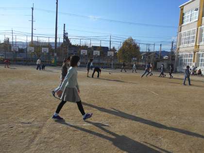 10歩の距離を5回はかって,計算して自分の歩幅を調べます。