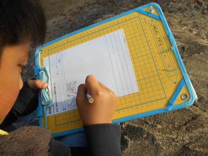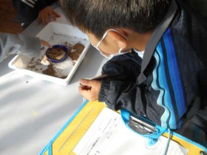 秋になると,生き物たちがどんな様子になっているかを,じっくりと観察しました。「夏の終わりに比べて葉っぱの色が茶色になったね。」,「カブトムシの幼虫って,体に斑点がついているんだ。」といった声が聞かれました。じっくり観察することで,たくさんの気づきがあったようです。