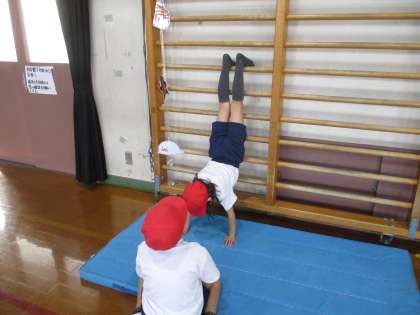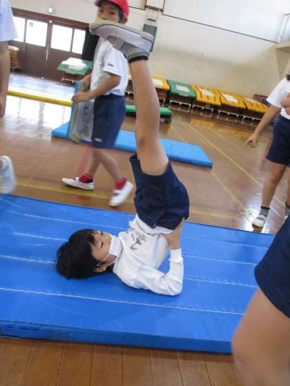 「うしろころがりも出来た!」や「きりんのところまでもう少し!」と少しずついろいろな技が出来るようになってきました。