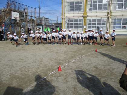 それほど寒くなく,走るには最適な気候でした。たくさんの応援をありがとうございました。子どもたちは歩くことなく,5分間走り切ることができました。とても頑張っていました。教室に戻ってからは,「あ〜疲れた〜頑張った〜。」と言っていました。
