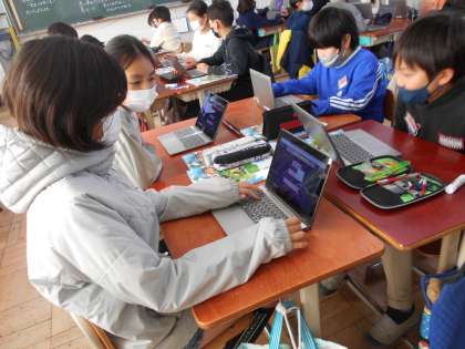 実際の交通事故のニュースを見てから,様々な場面での危険予測をギガ端末を使いながら考えました。