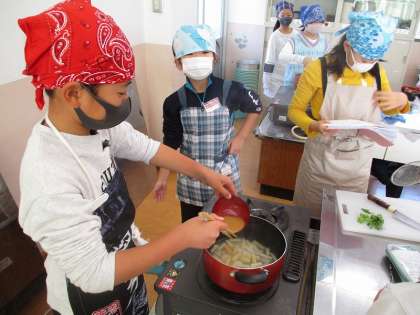 みそ汁は煮干しからだしをとって,野菜のゆでる順番に気をつけながら上手に調理できました。