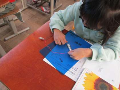 豆電球がつくつなぎ方とつかないつなぎ方を楽しそうに試す児童の姿が見られました。