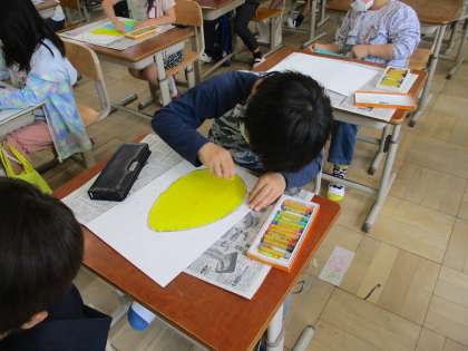 2年生になって初めての図画工作の授業がありました。「ふしぎなたまご」という題名だったので,「どんなたまごにしよう。」や「何がたまごから出るようにしようかな。」と一生懸命考えていました。完成が楽しみです。