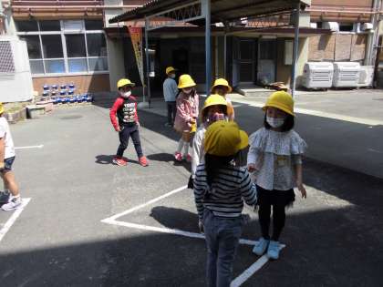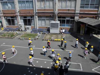 休み時間に中庭で遊ぶようになりました。どんじゃんけんをして楽しみました。
