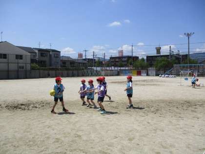 体育では,パスゲームを行っています。チームで協力して準備や後片付けをすることができました。パスをつなぎ,得点を入れたときの子どもたちの表情はとても輝いていました。