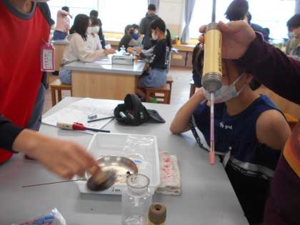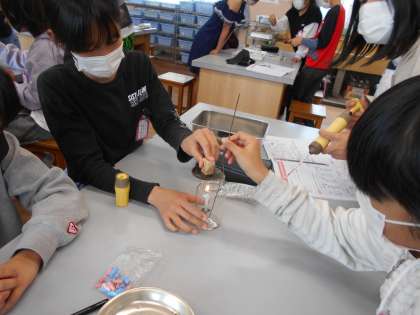 今日の理科は,「燃やす前と燃やした後の空気を調べよう」というめあてで実験を行いました。