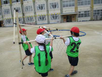 準備や後片付けもスムーズに出来るようになってきました。試合中も「○○さん,ゴール前に行って。」などの声も出ています。試合に負けても勝っても楽しいという意見あって,みんな楽しみながら学習しています。