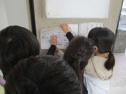 作った看板を貼りに行きました。「みんな読んでくれるといいなあ。」と期待をこめながら貼っていました。どの看板も,グループのみんなと協力して相談しながら作っていました。みんなに読んでもらえるといいですね。