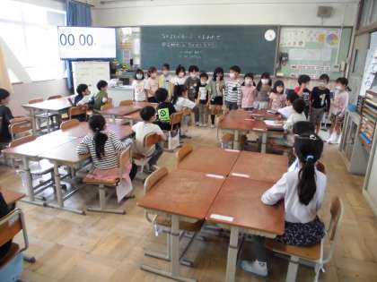生活科で,2年生と1年生の4〜5人でつくる「なかよしグループ」の顔合せをしました。プログラムは,はじめの挨拶,自己紹介,ゲームです。みんな,楽しそうに活動していました。これからも仲良くしたいですね。