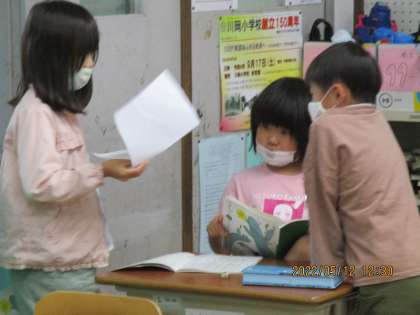 国語の学習「ともこさんはどこかな」で,まいごのお知らせをアナウンスしました。