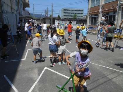 休み時間に中庭で遊具遊びをしました!どれも結構難しいけれど,それがおもしろい!