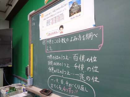 4けたずつ区切ると読みやすいことや,一,十,百,千が繰り返されていることに気づいて学習を進めていました。さらに大きな数を書くことにもチャレンジしていきたいですね。
