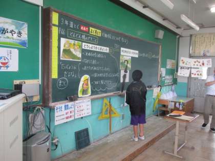 居林教頭先生による道徳科の学習です。。「どんどん橋のできごと」というお話を通して,「よく考えて行動するということ」について考えました。友達との関わりの中,よく考えて行動できなかった人物の思いを考えたり,交流したりしました。また,思わずかさを川の中に流してしまった人物の気持ちを実際にイメージしながら考える姿が見られました。どんな事でも,よく考えた上で行動することを大切にして,日常生活に生かしていきたいものですね。