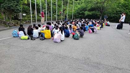 予定通り活動を終え,退所式を行いました。15時25分,山の家を出発しました。