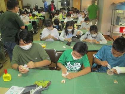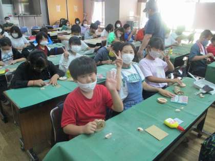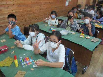 木をやすりで磨いて,絵や文字を書いて,ボンドでつけて完成です!