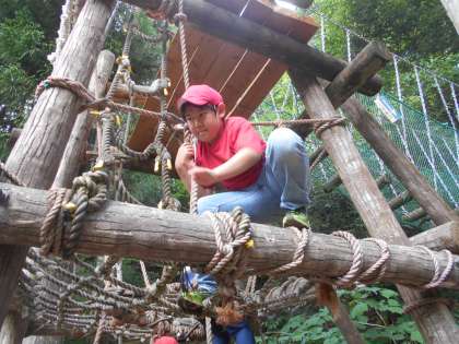 楽しみにしていた冒険の森(アスレチック)の様子です。難しいところも果敢に挑戦している様子がたくましかったです。さすが6年生です!!
