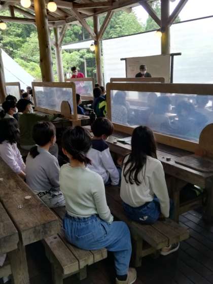 2日目午前の活動は,当初の予定では,冒険の森でしたが昨日からの雨で滑りやすくなっているため,ウッドキーホルダーづくりになりました。