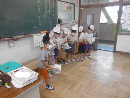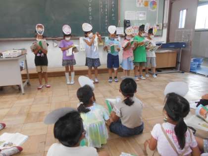 「おおきなかぶ」の音読発表会をしました。読むところを自分たちで決め、動きを入れるなどの工夫をして楽しく活動しました。協力しておおきなかぶが抜けました♪