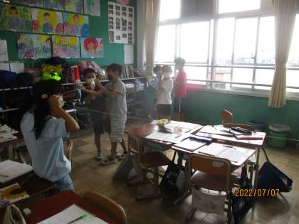 糸電話の糸をつなげて四人でも話ができるのかなど自分たちで考えて発展的な実験もでき楽しく学習できました。