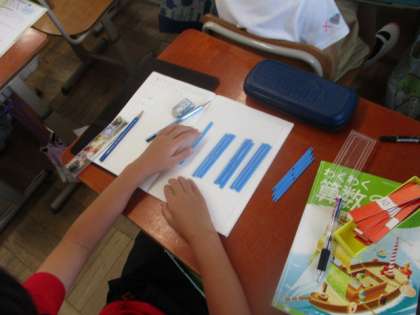 3年生の算数科では、あまりのあるわり算の学習を進めています。数え棒や数図ブロックを使って、何組にわけられて、何個あまるかどうかを考えました。「今まで通りのわり算の考え方でいけそう!」や「九九の考え方をすれば答えもすぐでそう!」といった声が聞かれました。さあどんどん解き進めていくことで慣れていきましょう。