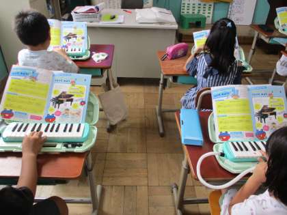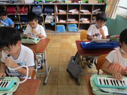 音楽では、鍵盤ハーモニカで「メリーさんのひつじ」を学習しています。子どもたちにとって馴染みのある音楽のため、どんどん上手になっています。