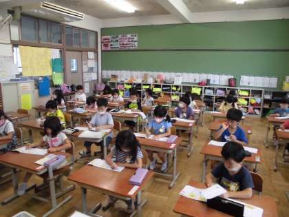 チャレンジタイムに、国語や算数の復習をしています。