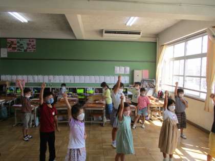 スポーツ会に向けて、競技やダンスの練習を頑張っているところです。休み時間にも自主的にダンスの練習に取り組む姿が見られました。友達が踊っているのを見て、一緒に踊ろうとどんどん人が集まってきました。覚えたてのはずですが、とても上手に踊れています。