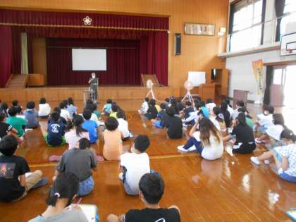 今日は、川岡小学校の元校長先生 青野校長先生に来ていただいて,川岡小学校の歴史について話を聞かせていただきました。