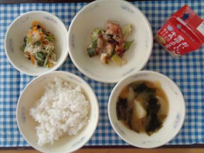 今日の給食は,ごはん・鶏肉のてり焼き・小松菜と切り干し大根の煮びたし・みそ汁・牛乳でした。