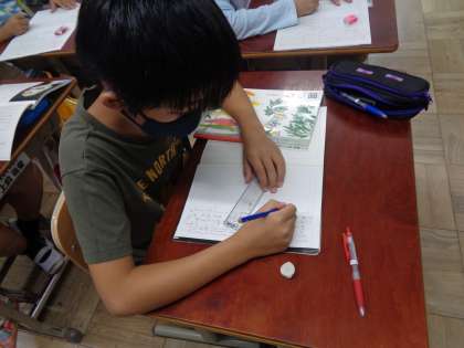 ごんぎつねの学習の最後に自分の考えをまとめました。最初の感想と学習後の感想が変わっていたり、新たなことに気づいたりしている人もたくさんいました。そのあと友達と交流しました。友達の考えを聞いてより考えを深めることができました。新美南吉さんに興味を持っている人もたくさんいました。