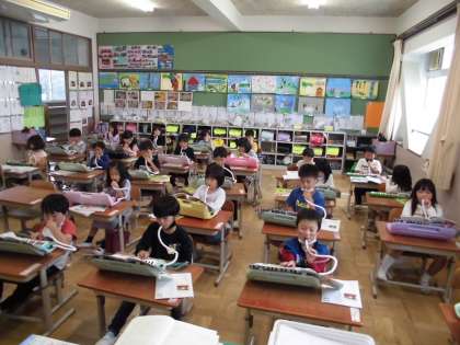 音楽科で、鍵盤ハーモニカの練習をしています。