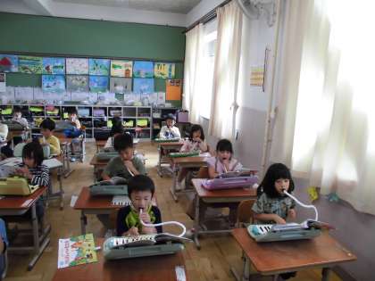音楽科で鍵盤ハーモニカの演奏をしています。