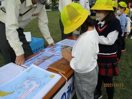 南極クイズにしてくださり,素敵なペープサートも作って,子どもたちにもとてもわかりやすい説明をしていただきました。自衛隊の方もこんなにたくさんの人に来てもらうのが初めてということで,とても気合が入っている!と言ってくださり,子どもたちのために一生懸命してくださっていました。