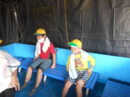 まずは足湯体験をしました。とっても嬉しそうでした。
