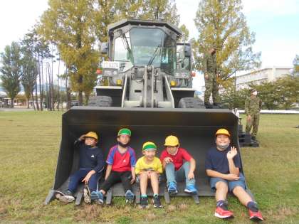 いろいろな種類の車があって大興奮の子どもたち。実際に運転席に乗って操作を教えてもらったり、大きな戦車を目の前で見たり、本当に貴重な体験ができました。