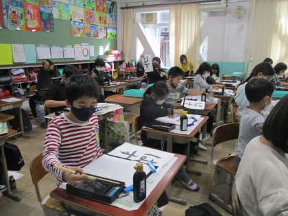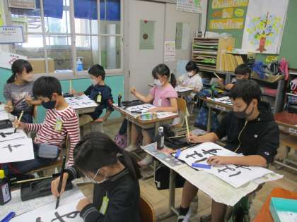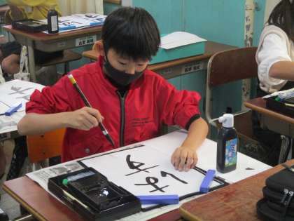 習字の時間に「はす」の文字を書きました。はの横の結びと,すの縦の結びに気をつけて書くことができました。