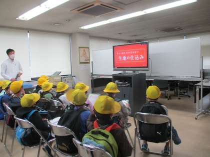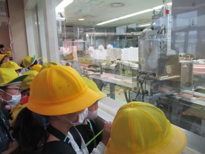 3年生は初めての社会見学に行きました。社会の「工場でつくられるもの」の学習では、京都のお土産のついて意見を出し合い、人気のある「八つ橋」について調べています。八ツ橋はどのようにしてたくさん作っているのか予想しました。実際に工場で八つ橋が作られている様子を見せていただきました。気がついたことを書き止め、質問もたくさんするなど積極的に学習することができました。