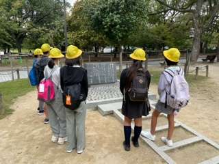 修学旅行<1日目>「広島平和記念公園を見学しています」