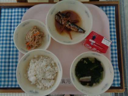 今日の給食は,麦ごはん・いわしの変わり煮・もやしのごま炒め・すまし汁・牛乳でした。変わり煮には酢が入っている効果か,骨が柔らかくなり,食べやすくなります。今日は返却された食缶には骨も残っていないクラスや,見事に骨だけ上手に取ったクラスなどありました。