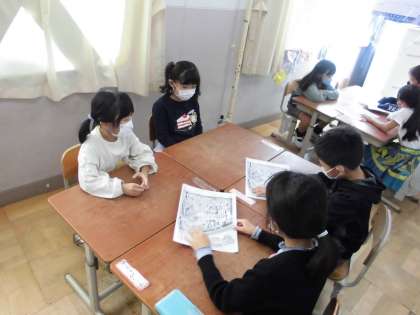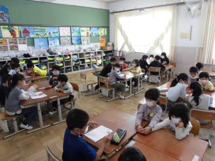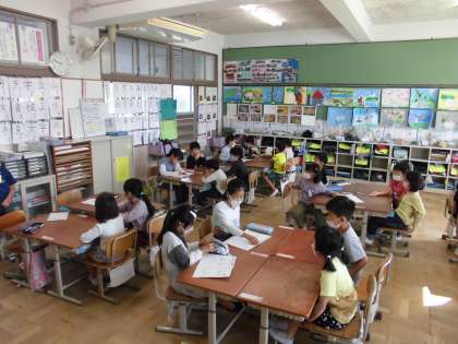 生活科の時間に、なかよしグループ活動をしました。木曜日の校外学習の準備です。まず、自己紹介をしました。次に、植物園での活動について、2年生から教えてもらいました。また、お弁当の後に、何をして遊ぶかを決めました。最後に、グループで楽しい教室遊びをしました。笑顔いっぱいで、楽しい時間を過ごしました。