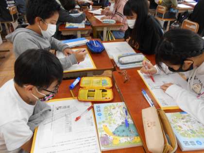 グループで交流し、意見を出し合いながら考えを広げている様子が見られました。