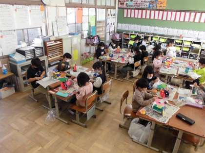 飾りつけができて、完成しました。友達の作品のよい所を見つけました。