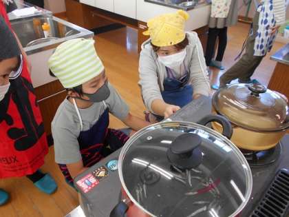 自分達で,ご飯を炊いたりお味噌汁を作ったりしました。