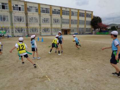 体育科でタグラグビーの学習が進んでいます。リーグ戦が終わり、対抗戦に入りました。作戦タイムを入れてやることで最初にゲームをした時よりも接戦になっているゲームが多かったです。これからチームでどんな作戦が出てくるのか楽しみです。