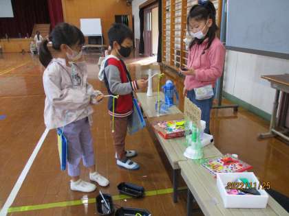 一年生に遊んでもらおうと,楽しい遊び方を考えたり,ルール説明や看板,景品を作って,準備をしてきました。