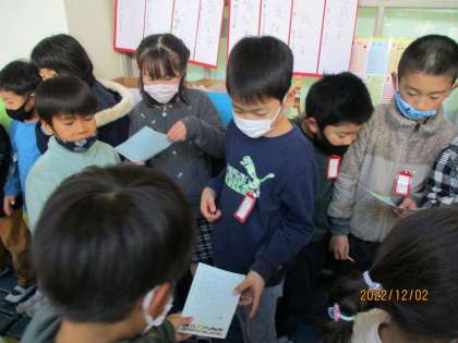 そのお礼にと一年生がお手紙をくれ,みんなとても喜んでいました。